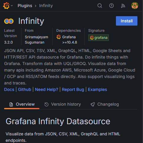 To ingest JSON data make sure you have installed the free Grafana plugin called Infinity Datasource: