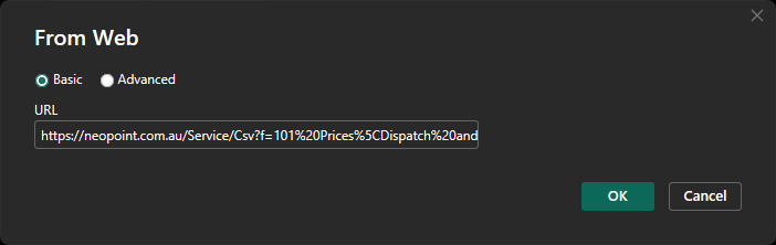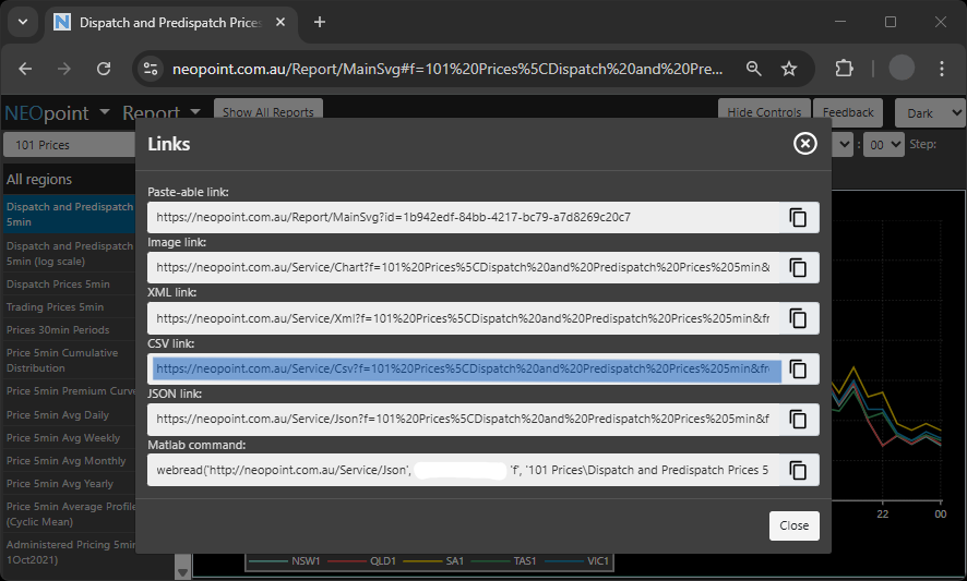 "https://www.neopoint.com.au/Service/Xml?f=101+Prices%5CRegion+Price+5min&from=2021-10-28+00%3A00&period=Daily&instances=NSW1§ion=-1&key=XXXXXXX" _