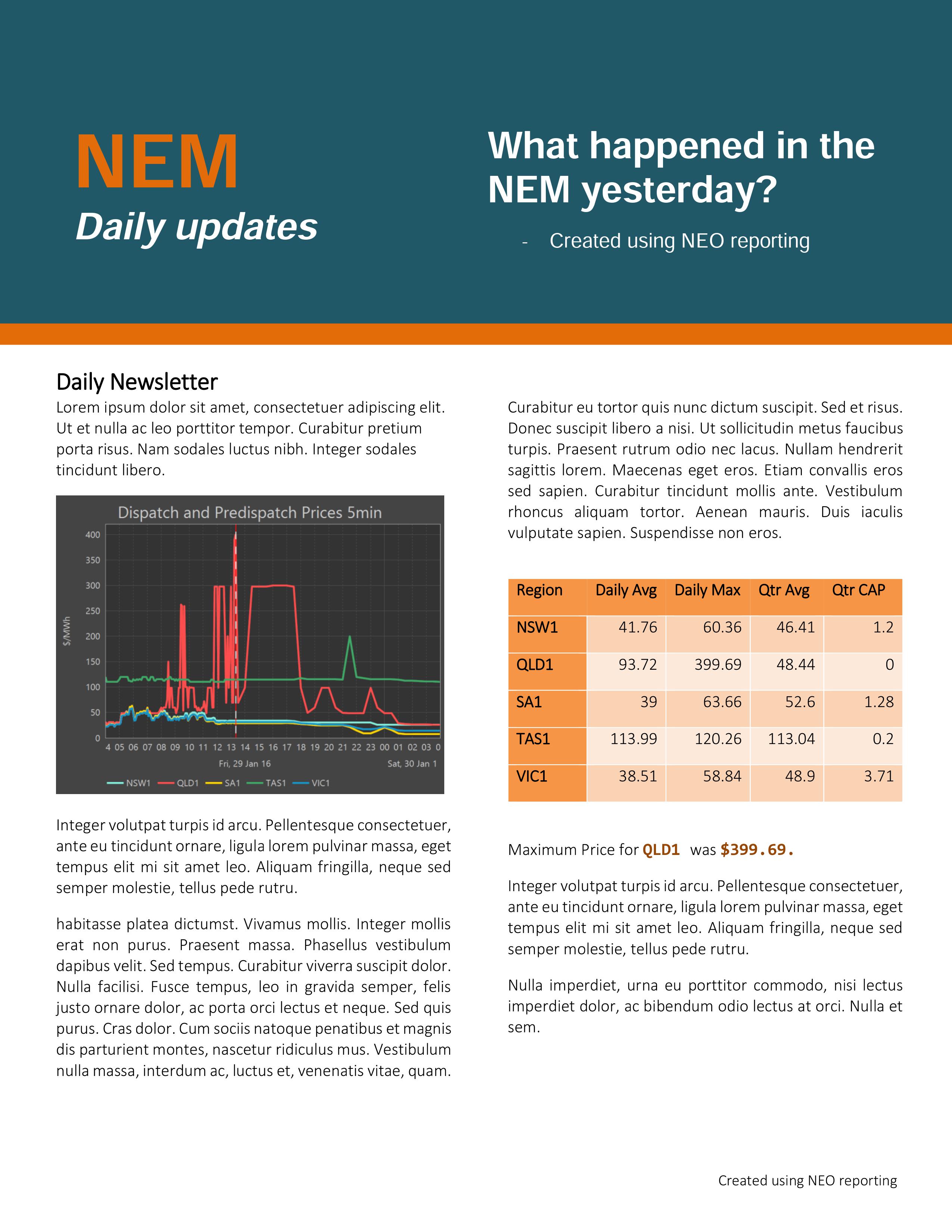 <<chart report='Services\NeoPoint\NeoMobile for NeoPoint\Prices\Regions Prices' , instances=NSW1,from ='2010-01-01' ,period=ThreeDays, w=1900, h=1250>>Example below shows on how to include a chart with a particular theme