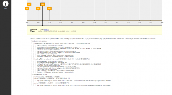 The Optimal Energy Controller (OEC) is suitable for controlling non-scheduled peakers, semi-scheduled wind farms and solar PV + battery installations. Intelligent algorithms use real time electricity and gas data to optimise dispatch, bidding, maintenance and equipment life as appropriate. Some of the main features of OEC include:
