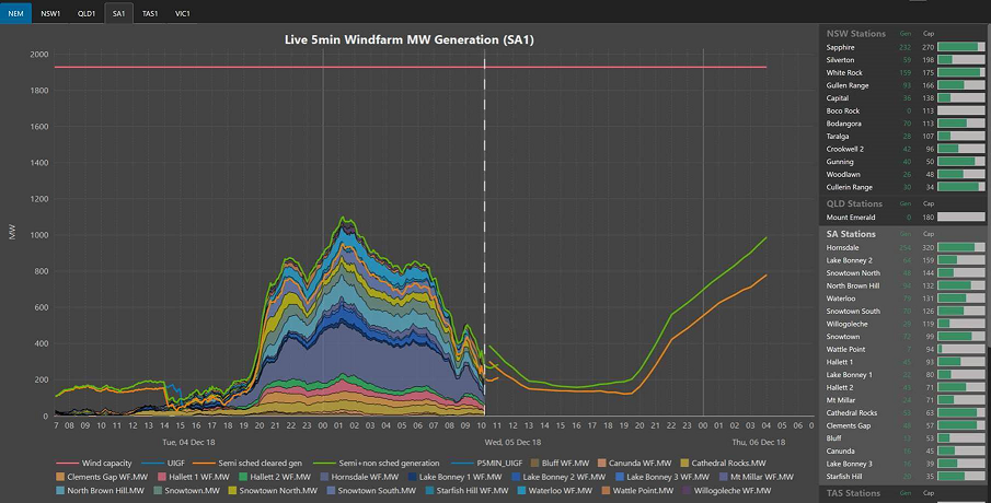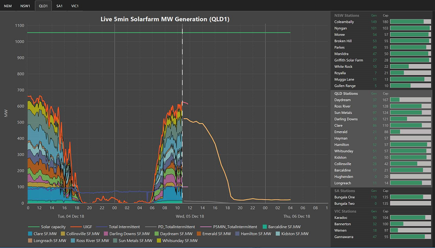 Since QLD now has a new wind farm called Mount Emerald, IES have added a QLD tab into the dashboard. QLD has also been added to the NEM chart. The impact caused by this change is that the NEM predispatch data is now showing QLD’s total intermittent and semi-scheduled generation. We have renamed and added extra attribution to the NEM chart to make it clearer.