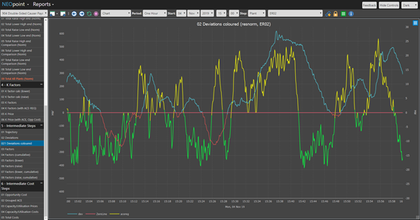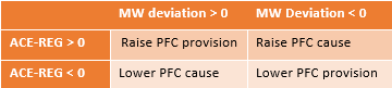 In Figure 3 ER02 has a significant deviation at the time around 15:40. This deviation could either be providing a balancing response for the system or an imbalancing response causing deterioration of frequency. Causation or provision can be determined from the sign of ACE-REG; positive ACE-REG implies that the system requires more generation, and vice versa. If ACE-REG is positive and deviation is positive, the unit is providing PFR. The other conditions for causer and provider are given in the table 1 below. Figure 4 identifies regions of causation and provision by colour coding deviation and ACE-REG by sign.