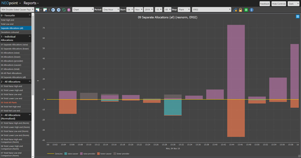 The factors can be used as weighting factors to allocate cost to both causers and providers. A representation of the costs/payments allocated to ER02 based on this 1-hour period is provided in figure 7. Under this mechanism a unit can have both causer and provider allocations (for both Raise and Lower) within a single dispatch period.
