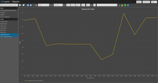 Figure 1 - Opportunity costs for a selected 1 hour period