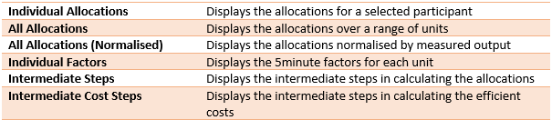 Displays charts relating to the cost allocation process. A breakdown of each section is provided below.